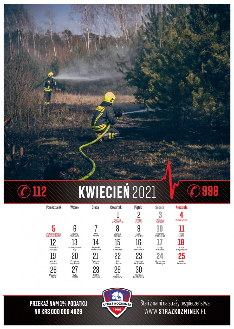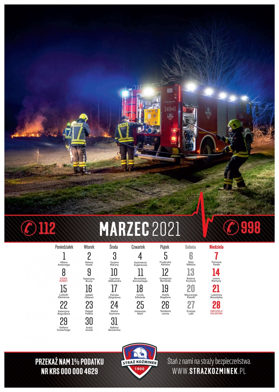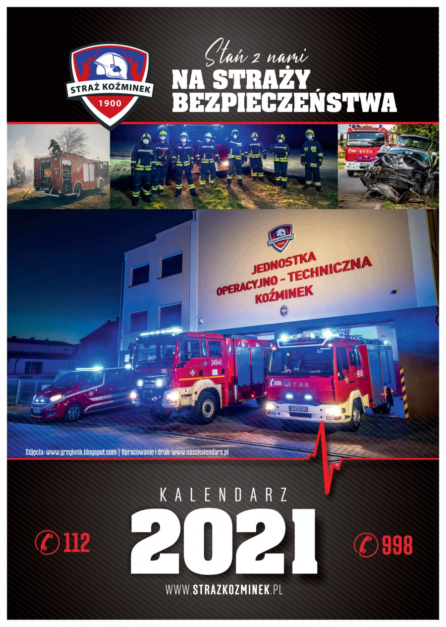 Strażacy z Koźminka wydali 13-stronicowy kalendarz na rok 2021. Podobnie jak w latach wcześniejszych, wszystkie zdjęcia powstawały podczas akcji ratunkowych, ćwiczeń i szkoleń.